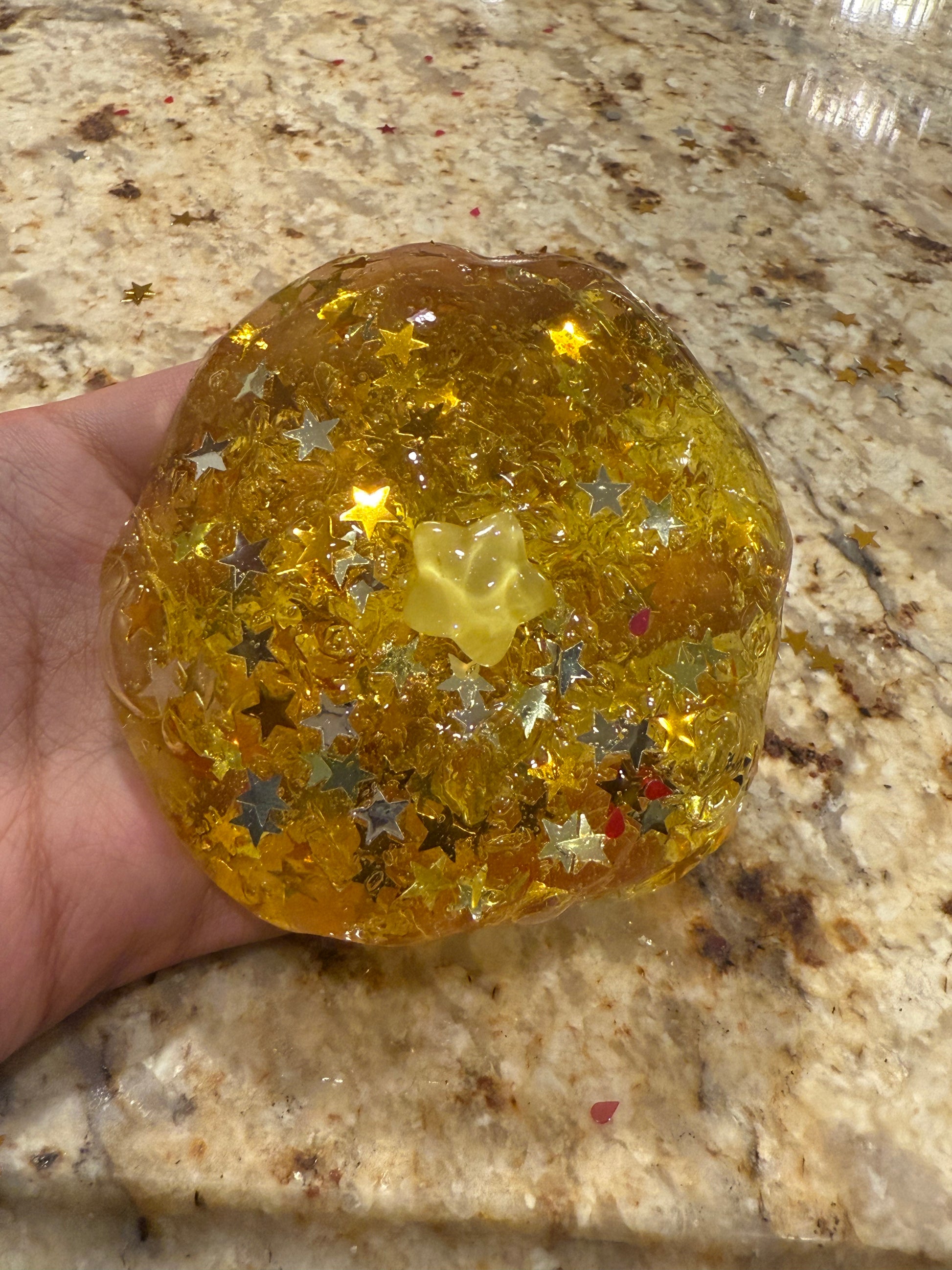 This clear slime has our standard thick, "clicky," holdable, and stretchy clear texture. It is perfect for slime enthusiasts of all levels because it is not sticky or difficult to play with. It's just as beautiful in person as these pictures show! Sequins come unmixed so you can experience adding them in for yourself!! (All clear slimes are unscented to prevent fogging them up!!)
